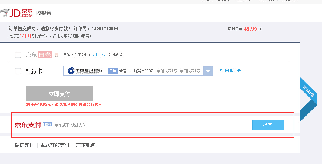 京东支付功能是一种广泛应用的互联网支付结息渠道,现以京东商城为例,演示如下: