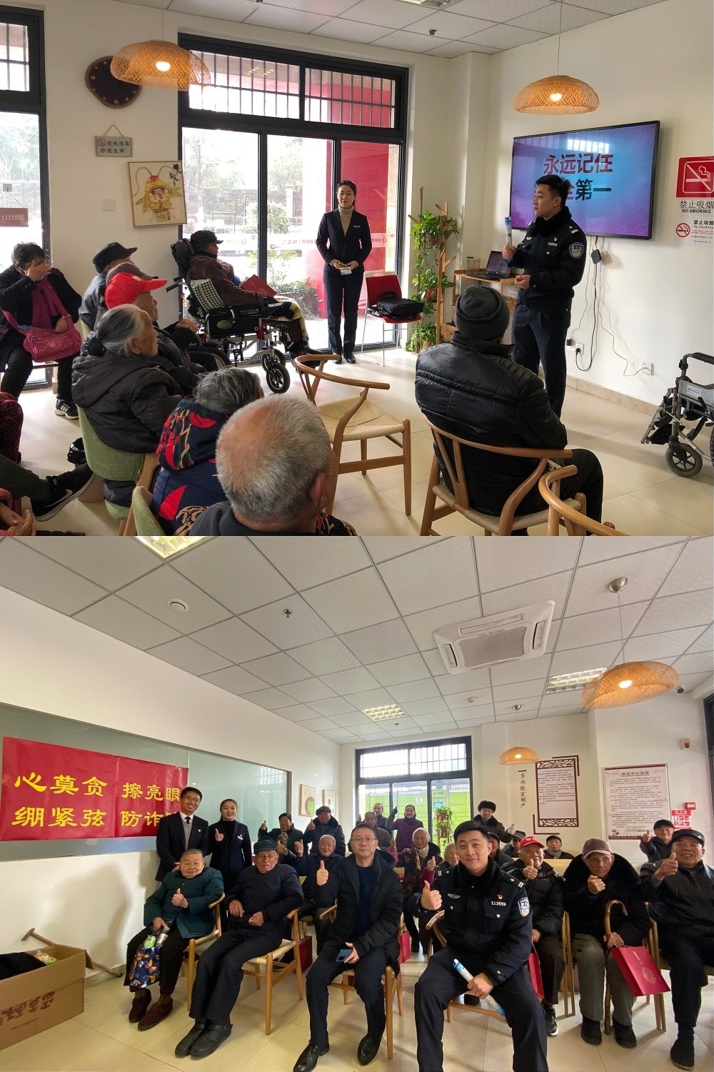 转塘支行联合转塘街道派出所走进村老年活动中心开展针对老年人的防范诈骗知识宣讲。我行金融宣讲师和民警轮流上台,向老人们介绍了近期流行的各类诈骗常用手法,并解答老年人提出的有关疑问及法律咨询,以具体案例揭秘诈骗伎俩,切实提高老年人对各类诈骗的防范意识和能力。