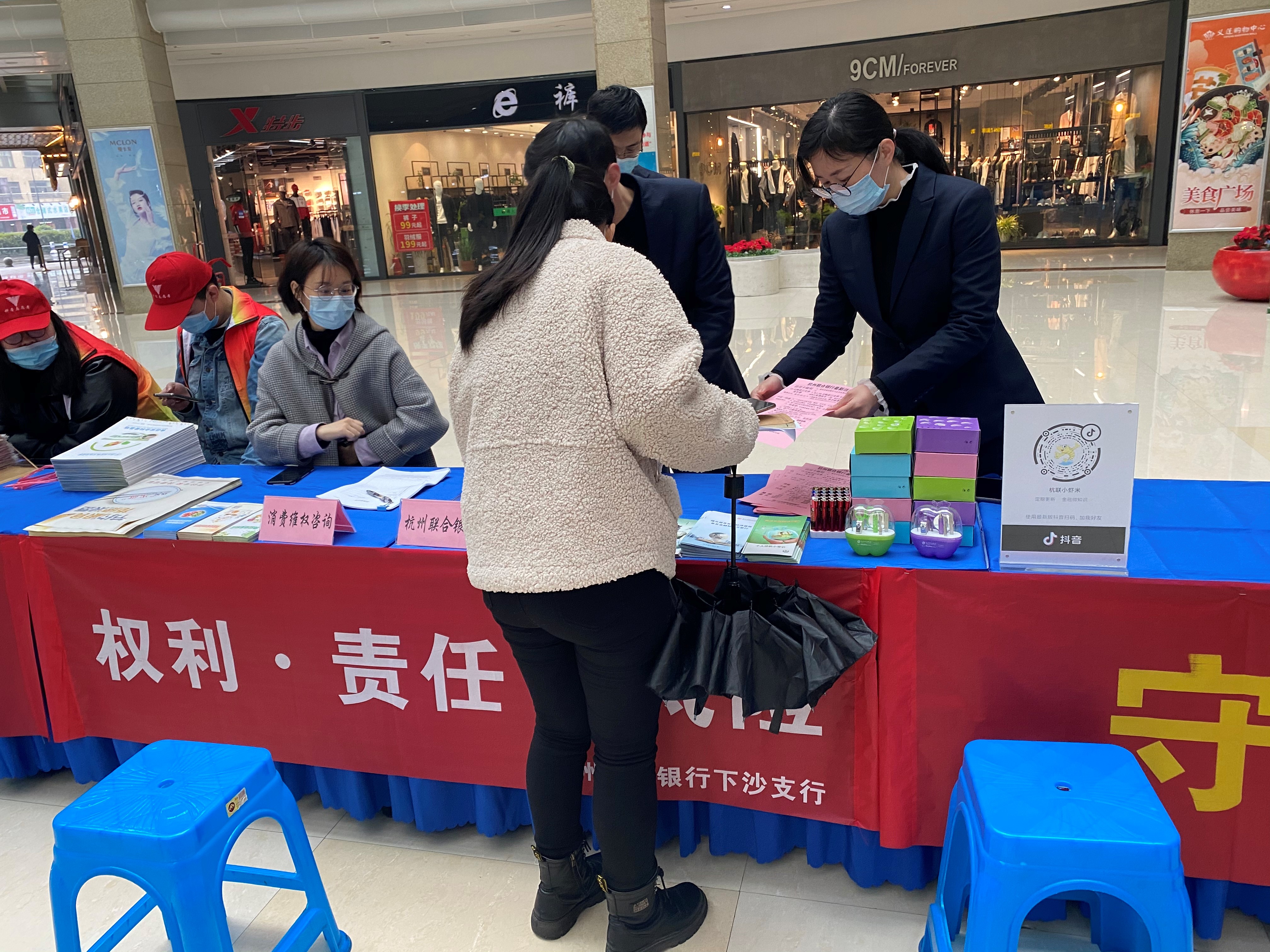 ●下沙支行携手钱塘新区市场监管分局,钱江海关办事处、浙江经贸职业技术学院开展“3.15国际消费者权益日”宣传活动。