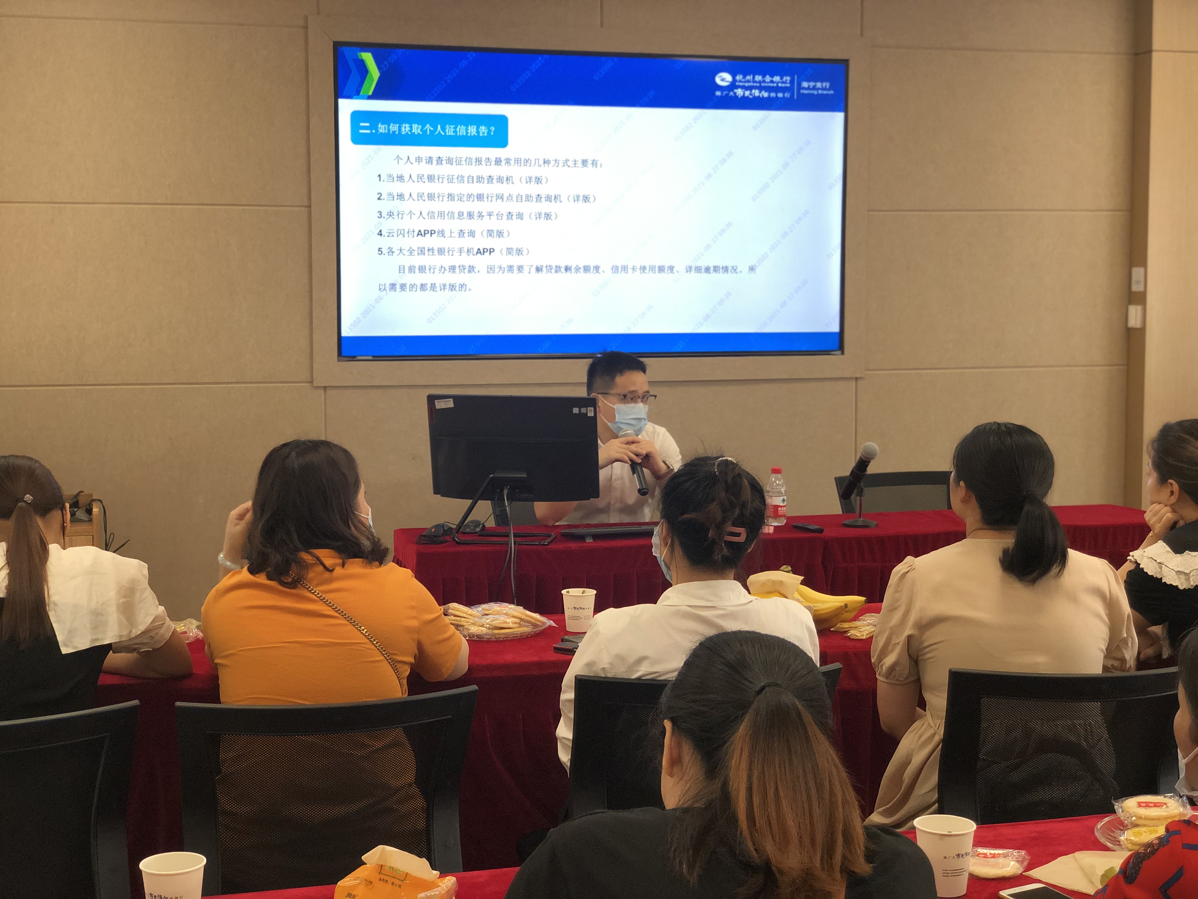 为进一步提升金融消费者信息安全和征信维权意识,强化征信合规管理,切实维护信息主体合法权益。9月1日,海宁支行以《个人征信报告怎么看》为主题,邀请了海潮中介联盟成员20余人在支行会议室开展了一期征信知识宣传活动。