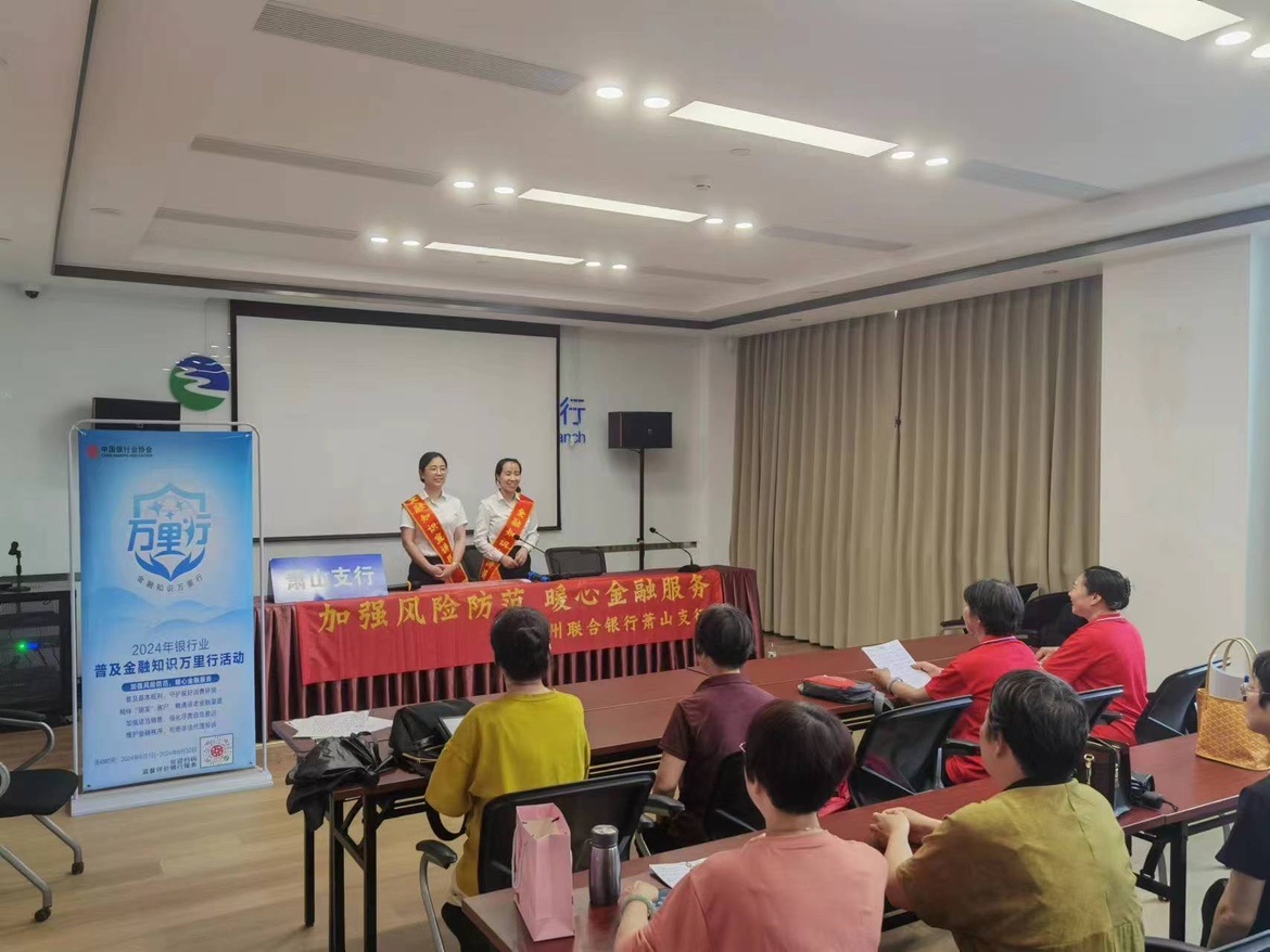 萧山支行充分利用老年大学、社区活动等客群年龄分布较大的特点,邀约老年客户群体参加专项的金融知识宣传活动。活动中悬挂醒目的宣传横幅“加强风险防范,暖心金融服务”,再由财富经理详细介绍各类金融产品,包括银行存款、理财产品等。将这些产品的特点、风险和收益预期等进行详细讲解,帮助公众理解产品的本质,选择适合自己的投资产品。活动中,还通过分享一些真实的金融风险案例,包括投资亏损、金融诈骗等。这些案例将让公众更加深刻地认识到金融风险的危害和重要性,增强风险防范意识,避免类似风险事件的发生,活动受到一致好评。