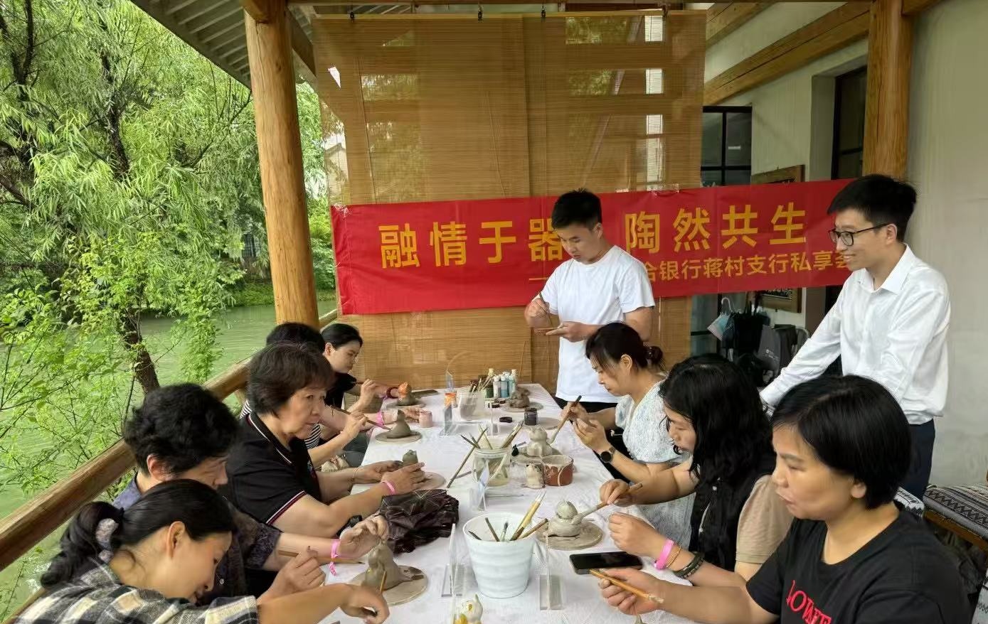 此外,蒋村支行举办了“陶艺制作与金融知识讲座”活动。客户们在陶艺老师的指导下,亲手制作陶艺作品,在创作过程中,工作人员适时开展金融知识讲座,围绕消费者权益保护、金融产品选择等方面进行详细讲解,并设置了互动问答环节,鼓励客户积极参与,进一步加深了客户对金融知识的掌握。