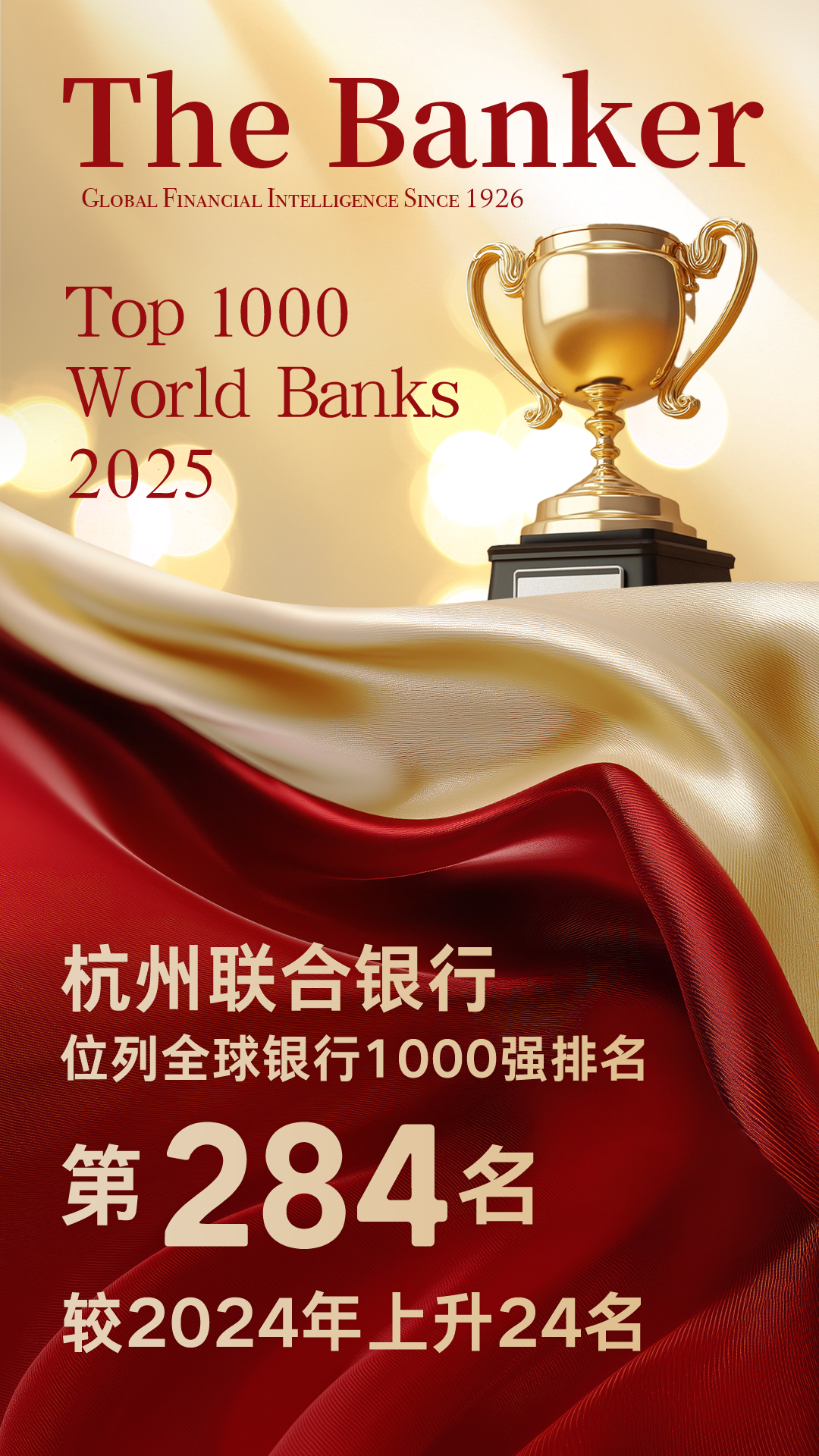 7月2日,国际权威财经媒体英国《银行家》(The Banker)杂志公布了“2025年全球银行1000强”最新榜单,我行位列全球银行第284位,较2024年上升24位,首次跻身全球银行300强。