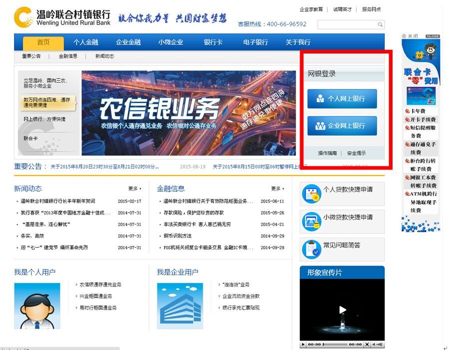 “在此提醒您温岭联合村镇银行唯一官方门户网站地址为:www.wurb.com.cn ;唯一官方客服热线:4006696592,平时请务必仔细核查。”
