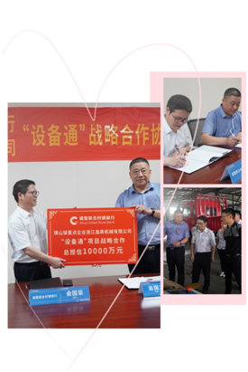 去年,诸暨联合村镇银行在璜山开设支行,信贷员在走访企业时获悉浙江鑫犇机械有限公司的“痛点后”,今年创新推出融资产品“设备通”,首笔向鑫犇机械公司授信1亿元。“设备通”以鑫犇机械企业为担保,设备采购客户只需提供30%的预付款,就可“借”鑫犇机械授信从银行获得剩余70%贷款。“‘设备通’不但让采购客户轻松拿到设备,而且保证了鑫犇机械应收款及时、足额到位。”诸暨联合村镇银行璜山支行行长边文光说。