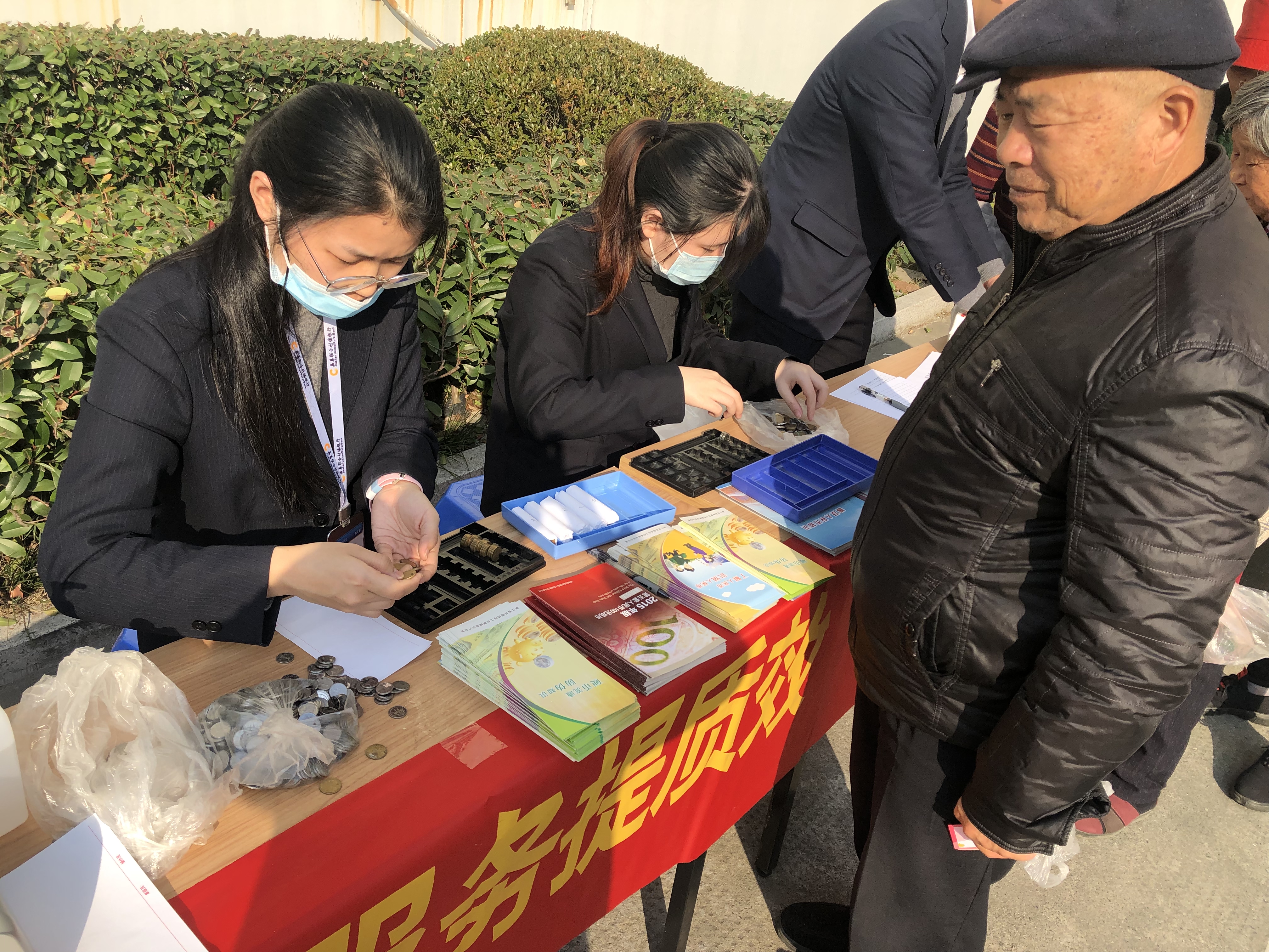 为进一步加大残损人民币回收力度,切实提高流通人民币的整洁度,11月26日,我行积极开展“现金大篷车”活动,走进嘉善县魏塘街道城桥社区进行硬币及残币兑换宣传。