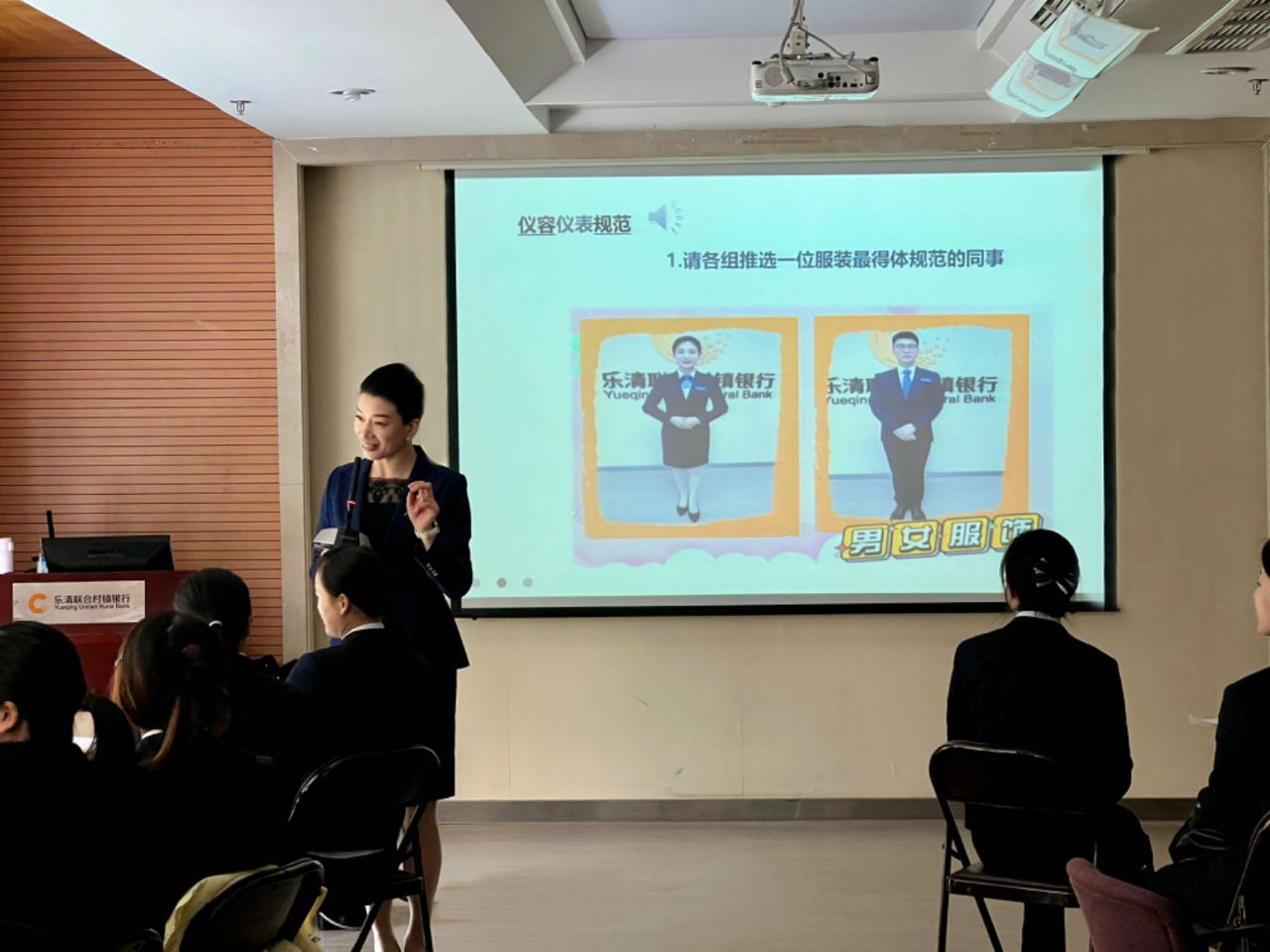 在服务礼仪方面,陈丽梅老师从“服务礼仪的内涵”“职业形象的塑造”“表情礼仪的价值”“仪态礼仪的运用”“服务环节的要点”“服务语言的要点”等六个方面进行深入浅出地解读。她通过图文并茂的方式讲解了个人形象、仪态表情、个人服饰、文明用语等服务礼仪知识。培训当天,柜面人员们统一服装组成若干个学习小组,各小组轮流展示服务礼仪,并互相点评、互相学习,提出建设性的改进意见。柜面人员承诺,将一如既往地做好窗口服务,以标准的银行人形象,精神饱满地展示着乐清村行人的风采,树立该行良好形象。